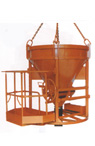 lauf mit Handradbetätigung und eingeschweißter Kette oder Traverse. Seitlich angebauter Personenaufnahmekorb mit Gitter-