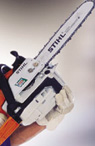 Profi-Elektro-Kettensäge auch für komplizierte Schnitte.